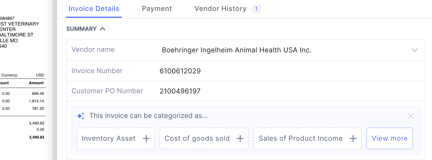 - Category/Class/Project classification - If a particular vendor invoice can’t be auto-classified into the right category, AI can learn patterns in your selection (for instance, are you always classifying Uber receipts as "Project Costs" instead of "Travel"?). Over time, this becomes a rule-set within your platform, and is automatically applied.