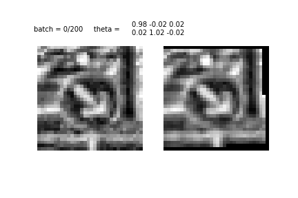 The network consists of a localisation net, a grid generator and a sampler. The localisation net takes an input image and gives us the parameters for the transformation we want to apply on it. The grid generator uses a desired output template, multiplies it with the parameters obtained from the localisation net and brings us the location of the point we want to apply the transformation at to get the desired result. A bilinear sampling kernel is finally used to generate our transformed feature maps.