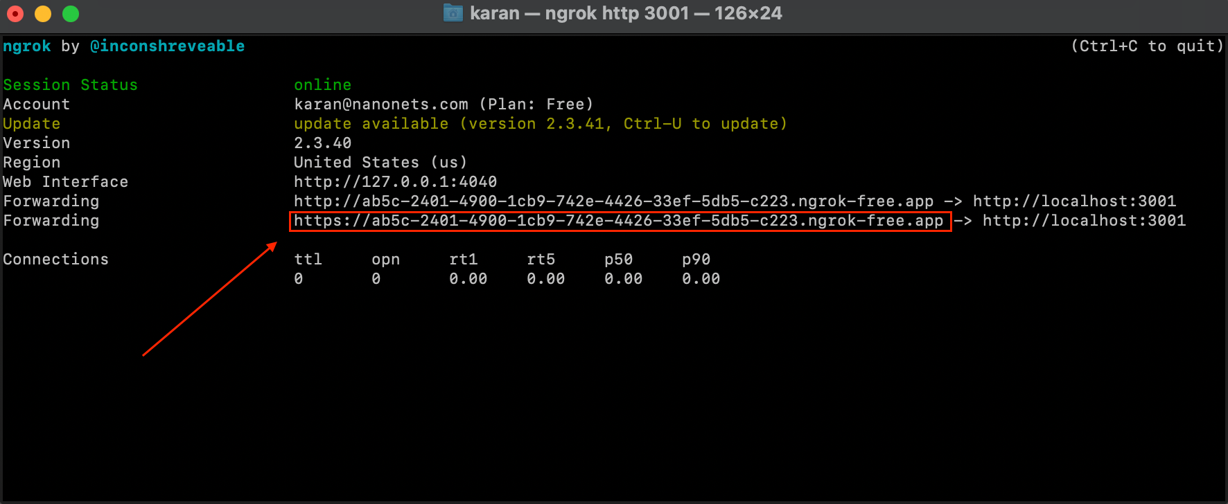 ngrok http 3001- We now have our Flask Service exposed over an external IP using which we can make API calls to our service from anywhere.