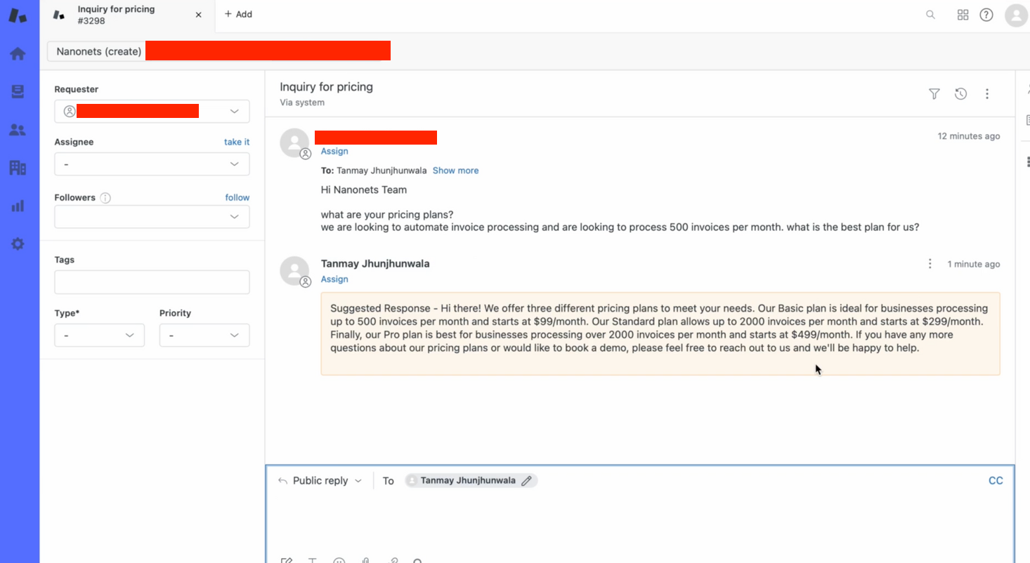 - Automate Responses: Set up automation rules in Nanonets to automatically post generated responses to Zendesk or forward them to human agents for review.