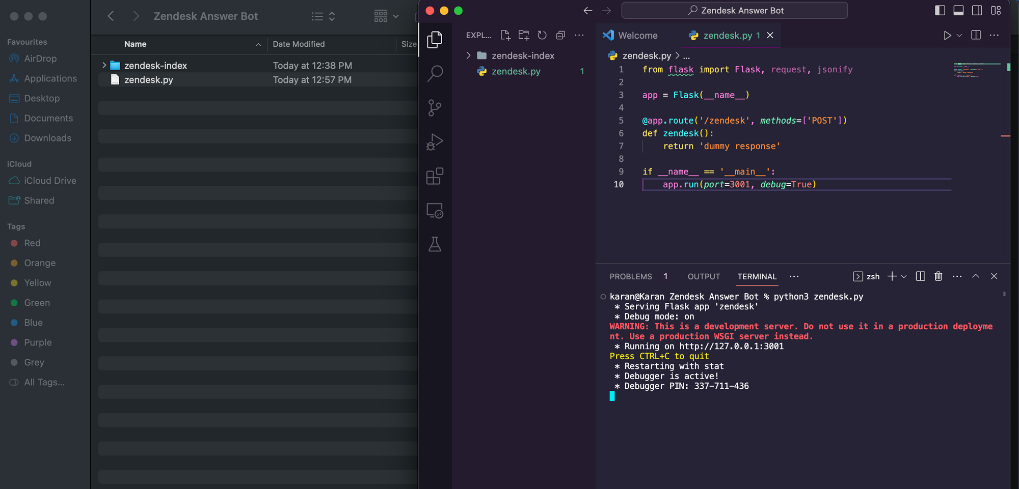 We replace our current flask service code in zendesk.py with the code below -