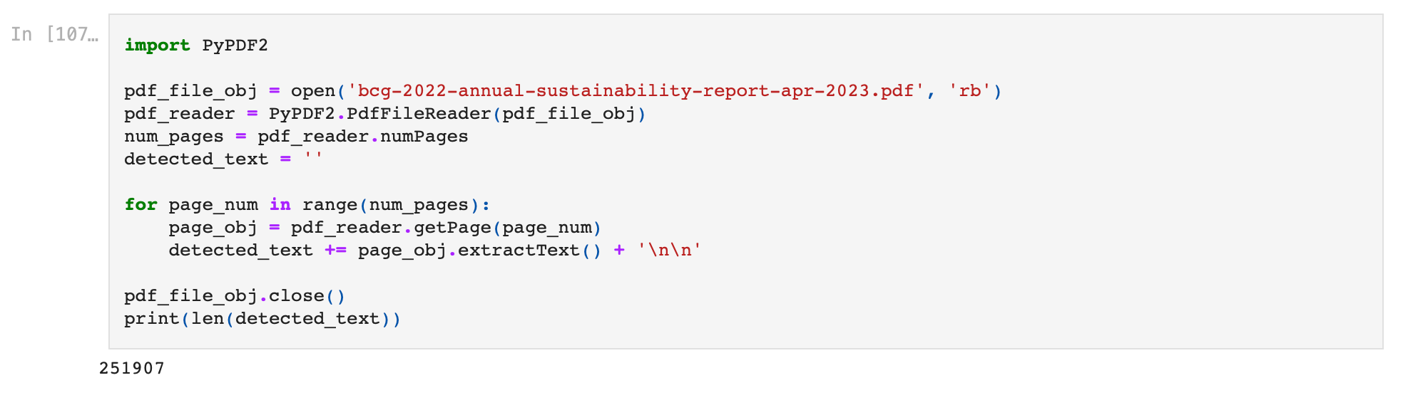 Note that this method fails for very large PDF files with lots of text. We will discuss how to remove this bottleneck in the section after this.
