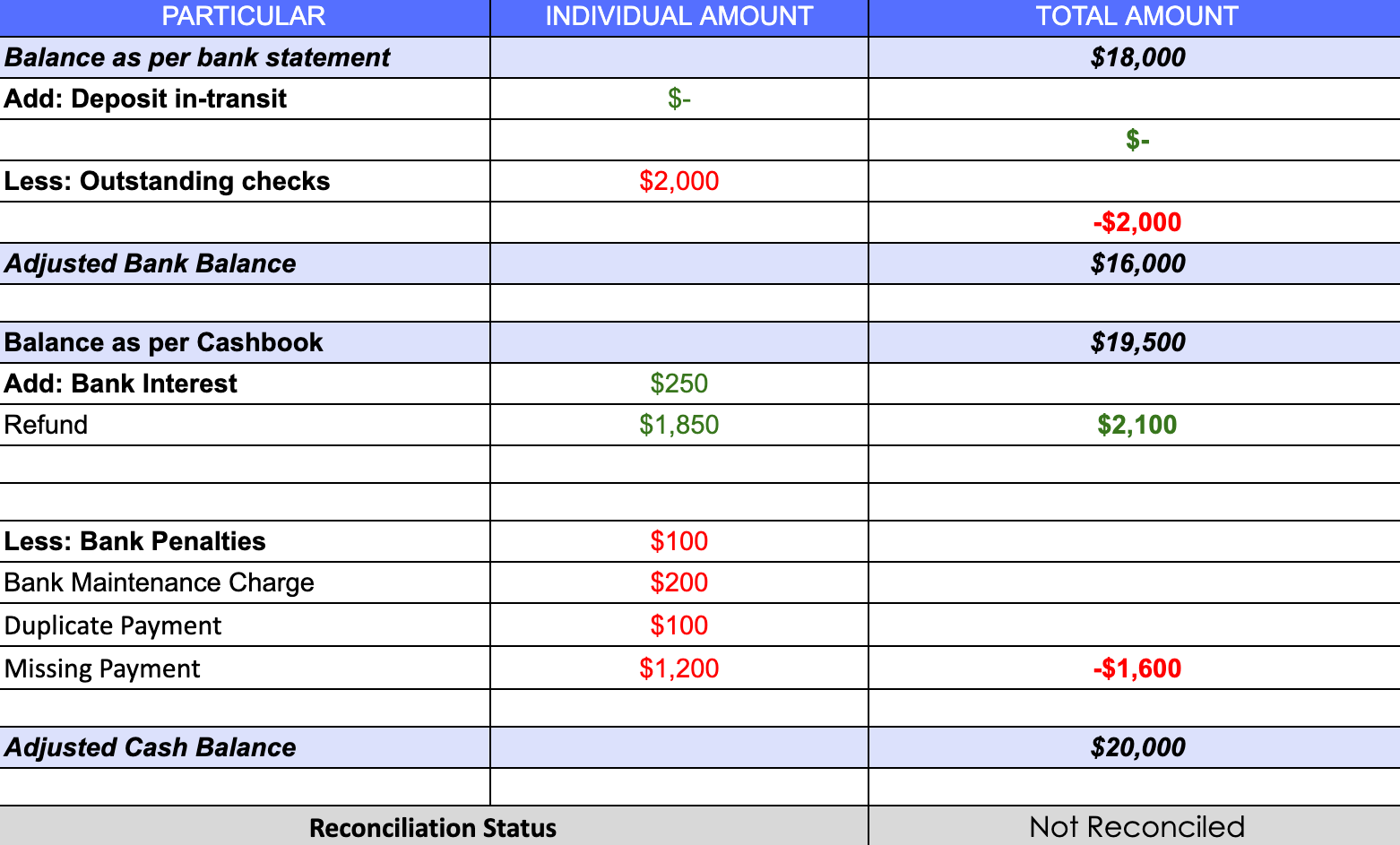 - Final Reconciled Total: The concluding balance after all adjustments have been made.