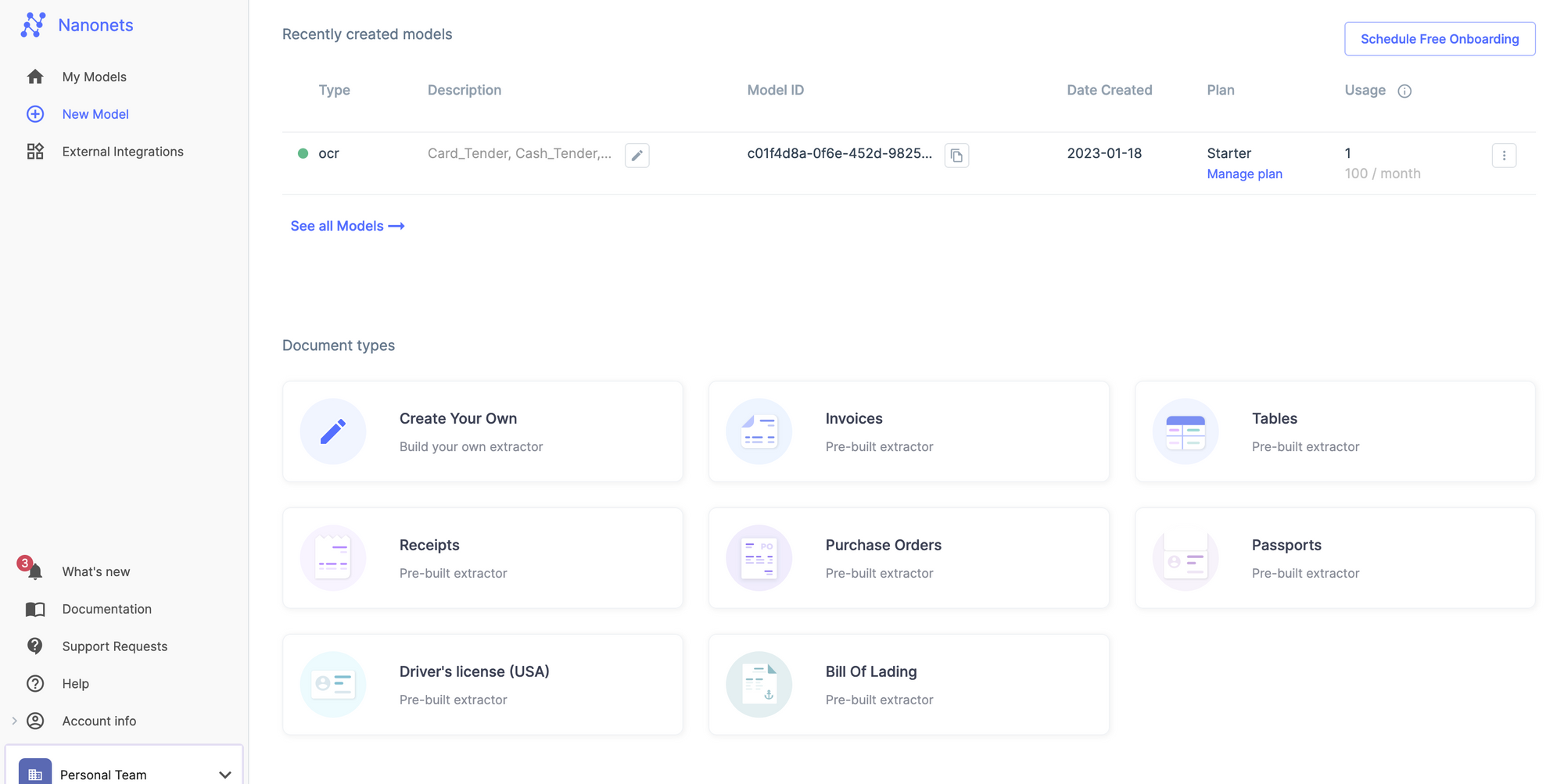 - Open your account and select the type of document you want to extract text from. You can create a custom model if you can’t see the document type.