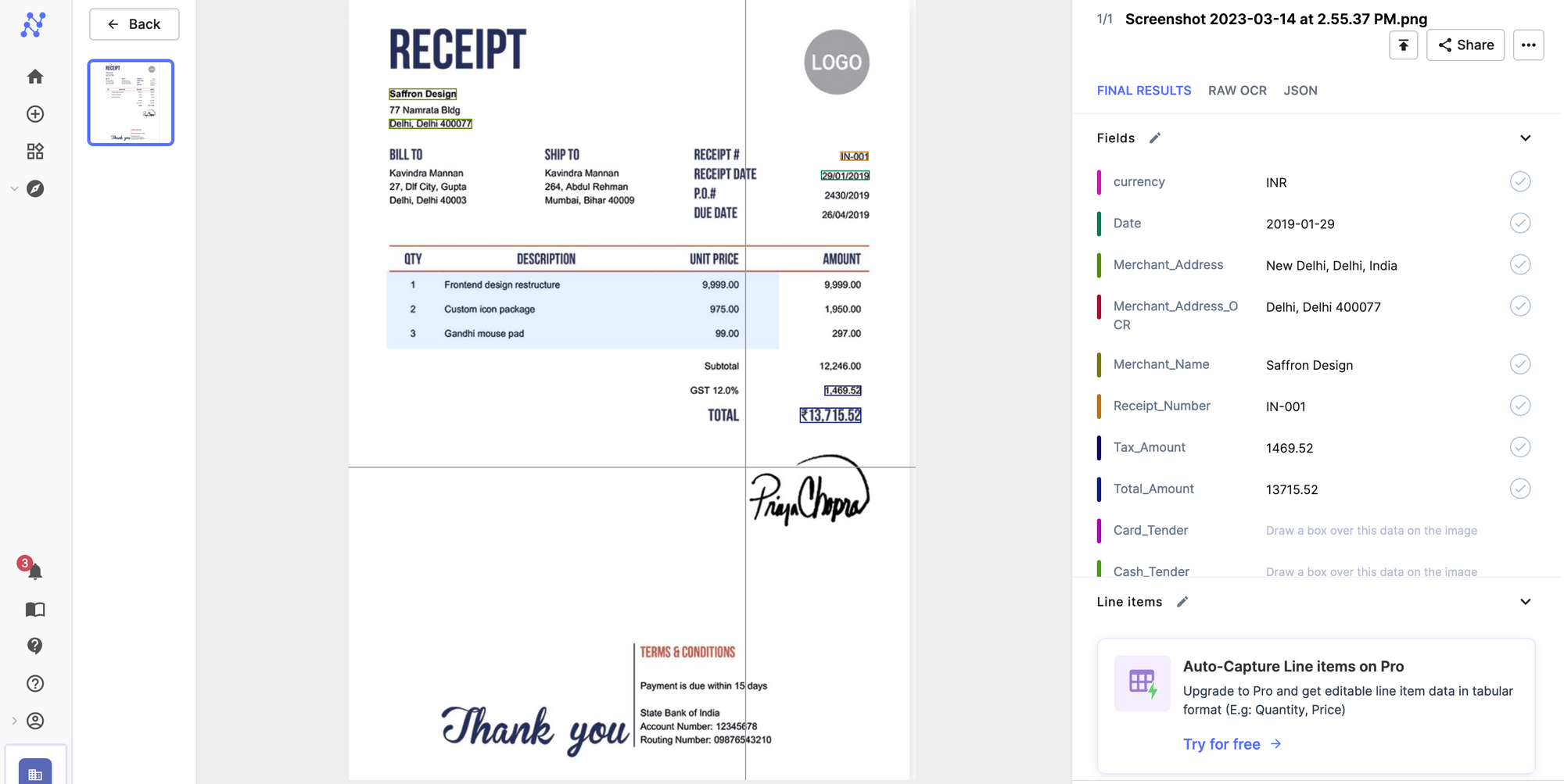 Let’s see how you can use Nanonets to convert invoice images into text format.
