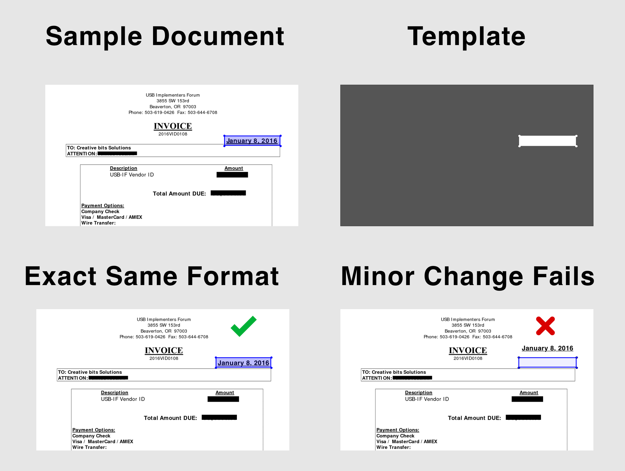 - There is no uncertainty how the solution will work, if the document is exactly the same format it will work perfectly