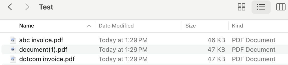 Python has been my go-to for renaming PDF files efficiently. It’s particularly effective for text-based PDFs with a clear structure. Imagine a folder, "Test" filled with invoices generically named, like "abc invoice" or "document(1)"—it’s a nightmare to manage.