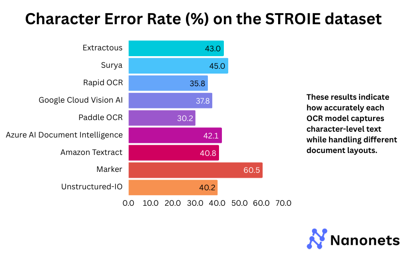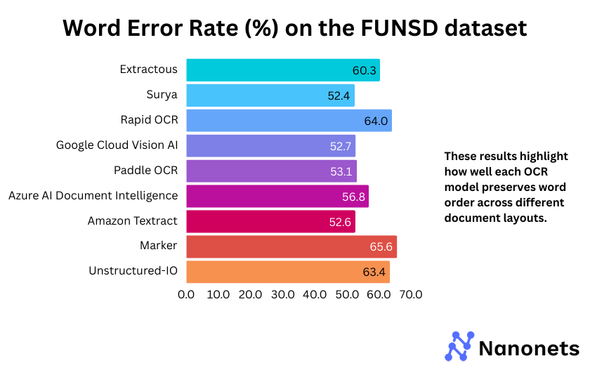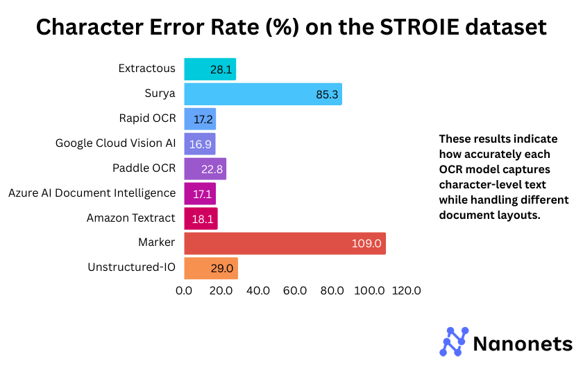 | Best Layout Handling (Least WER & CER) | Google Cloud Vision AI | Lowest WER & CER |