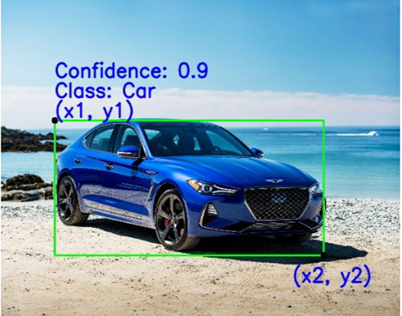 - Class: It denotes the object inside the bounding box — for example, cars, houses, buildings, etc.