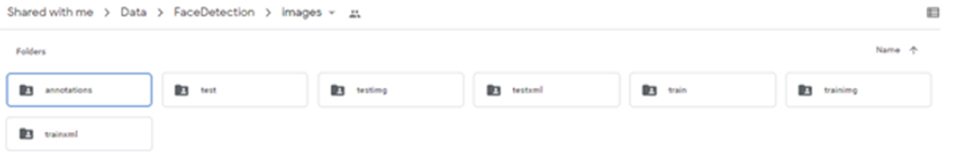 - In Google Drive, create a folder with the name FaceDetection.