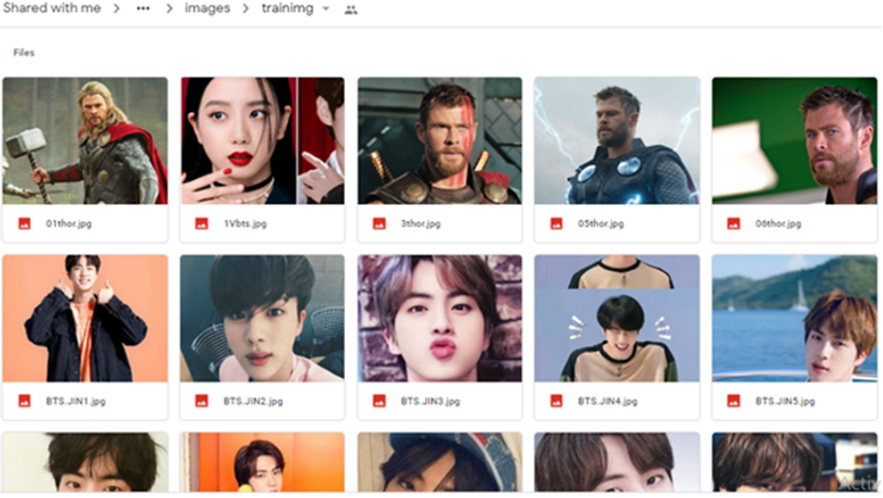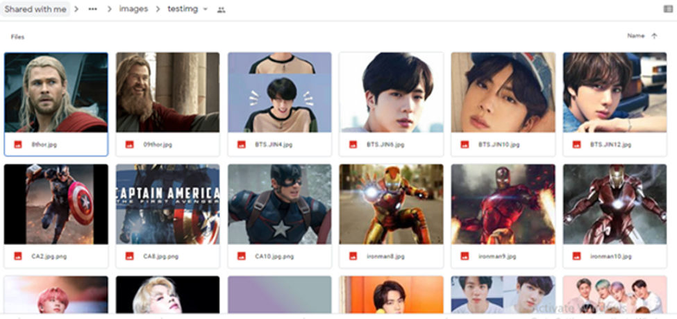 Now, in the train image folder, download and upload 10-15 images of BTS and Avengers in JPEG format. Similarly, in the test image folder, do the same for 5-6 images. It’s recommended to have more images in the dataset for accurate results.
