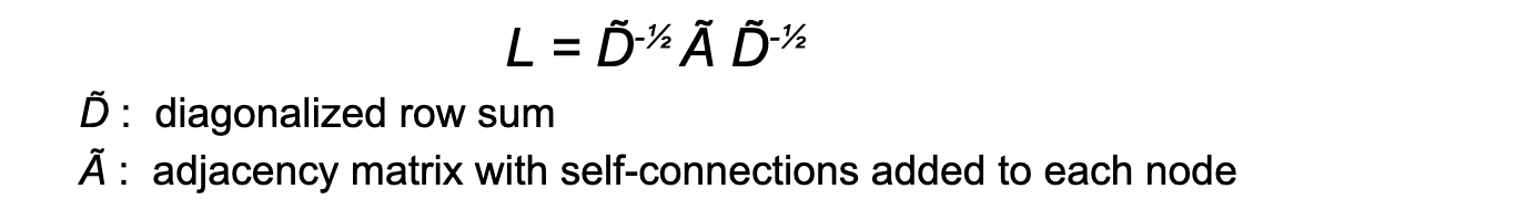 Note that L is not a learnable parameter, and is the same for all layers. In Kipf’s approximate convolutions on graphs, L is precomputed according to this formula: