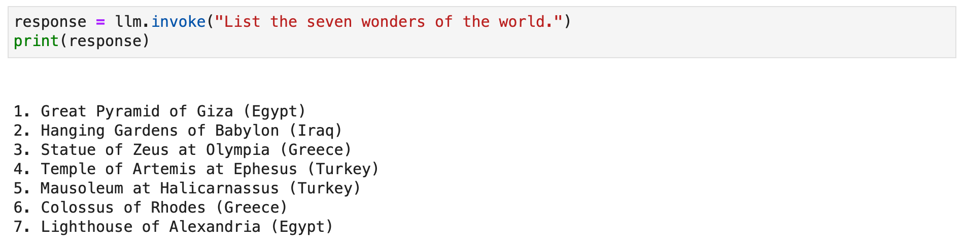 response = llm.invoke("List the seven wonders of the world.")
