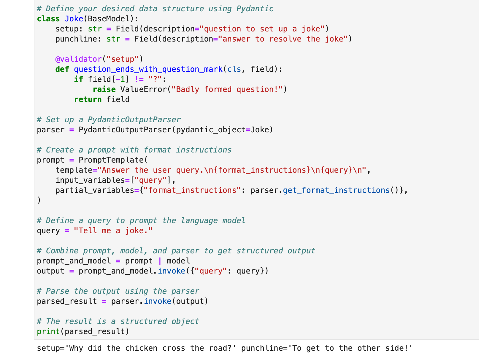 chain = ChatPromptTemplate() | ChatOpenAI() | CustomOutputParser()