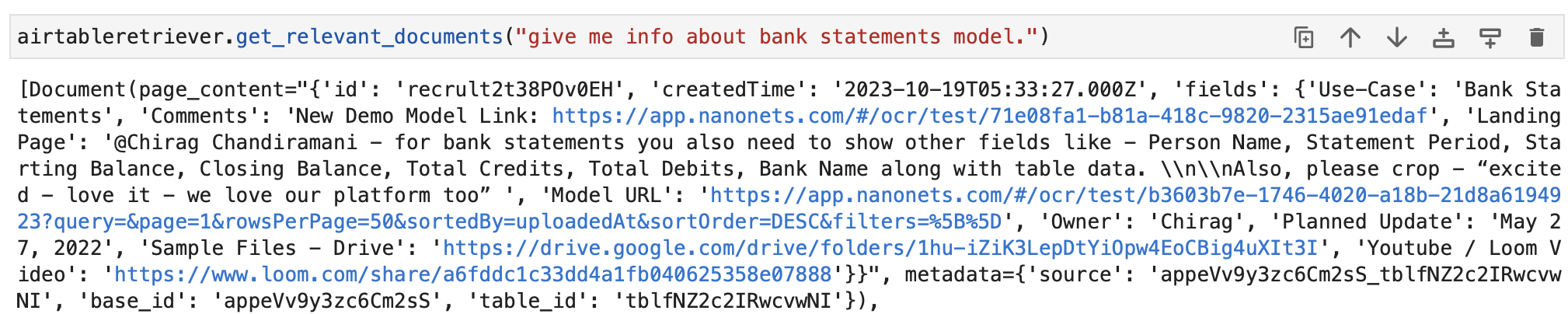 - Classification – Nanonets AI: Once the message is detected, Nanonets AI steps in to classify the message based on its content and past classification data (from Airtable records). Using LLMs, it classifies it as a bug along with determining urgency.