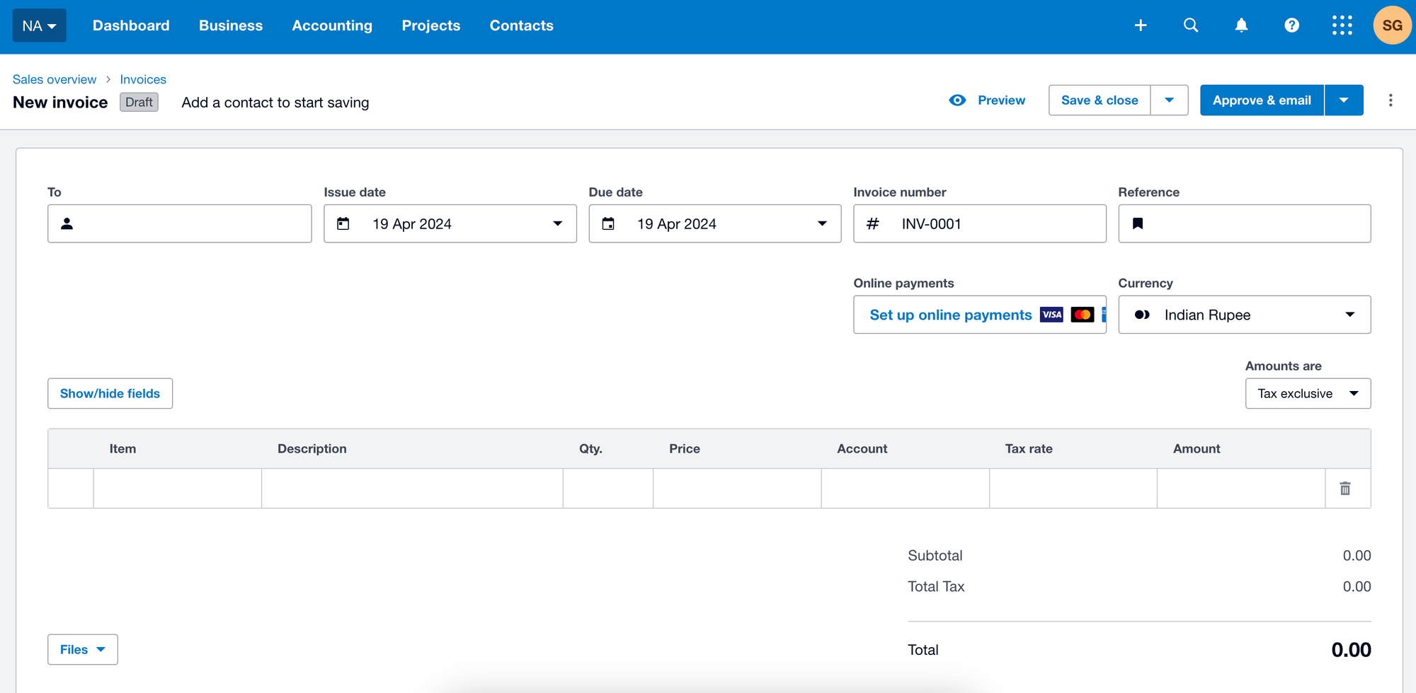 With Xero, invoice creation and every task following are much easier. You’ll be asked to choose between “classic invoicing” and “new invoicing” within Xero; if efficiency is your goal, choose “new invoicing” to reduce the workload and manual data lift. Here’s how invoice creation looks when using Xero “new invoicing”:
