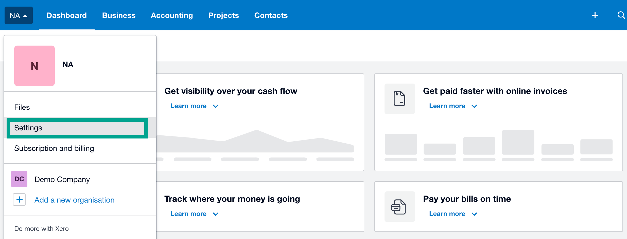 - Go to “Invoice Settings.”