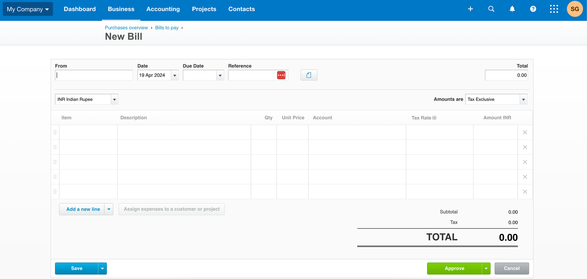 - When the invoice is filled out, choose “Save and Add Another” or “Submit for Approval.”