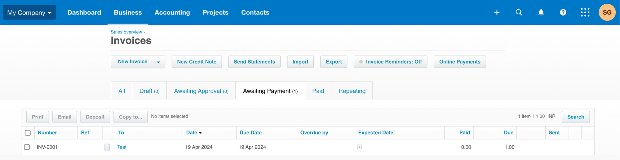 - Go to the “Invoice” module in the Xero application.
