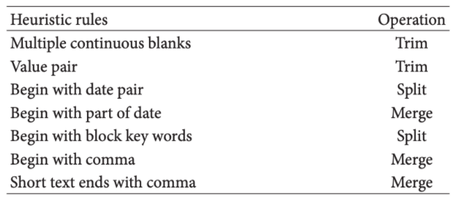 To identify the text blocks, the algorithm simply follows a few captions like “Project Experiments” and “Interests and Hobbies.” Whenever these captions are identified, they facilitate the follow-up work by going through each line and until the next captions are identified. After these blocks are segmented, they use their feature Writing Style and perform a few rule-based heuristics for every line. In their scenario, they considered the Chinese resume where spaces are used to separate different tags, which is a very clear Writing Style feature. Here's an example of how they mention their work experience.