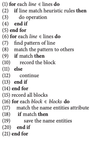 Looking at this algorithm, it’s a straight forward regular expression based pattern matching system. Similar to this, there are several tools and research proposed.