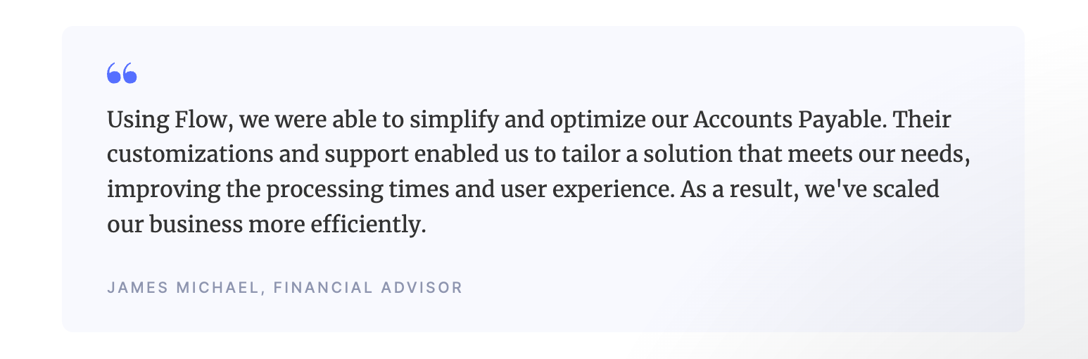 As bookkeepers, they understand the importance of high accuracy and error-free accounting to avoid unwarranted losses for their clients. However, their process of data extraction, validation, and updating it in QuickBooks was time-consuming. This issue posed a scalability problem, making it difficult to take on new clients as a significant amount of time was spent on creating an error-free accounts payable process.