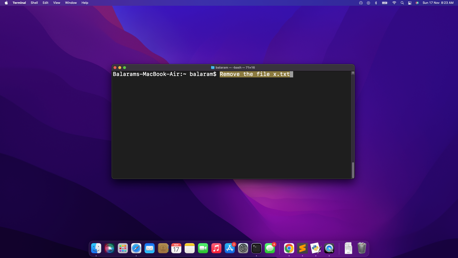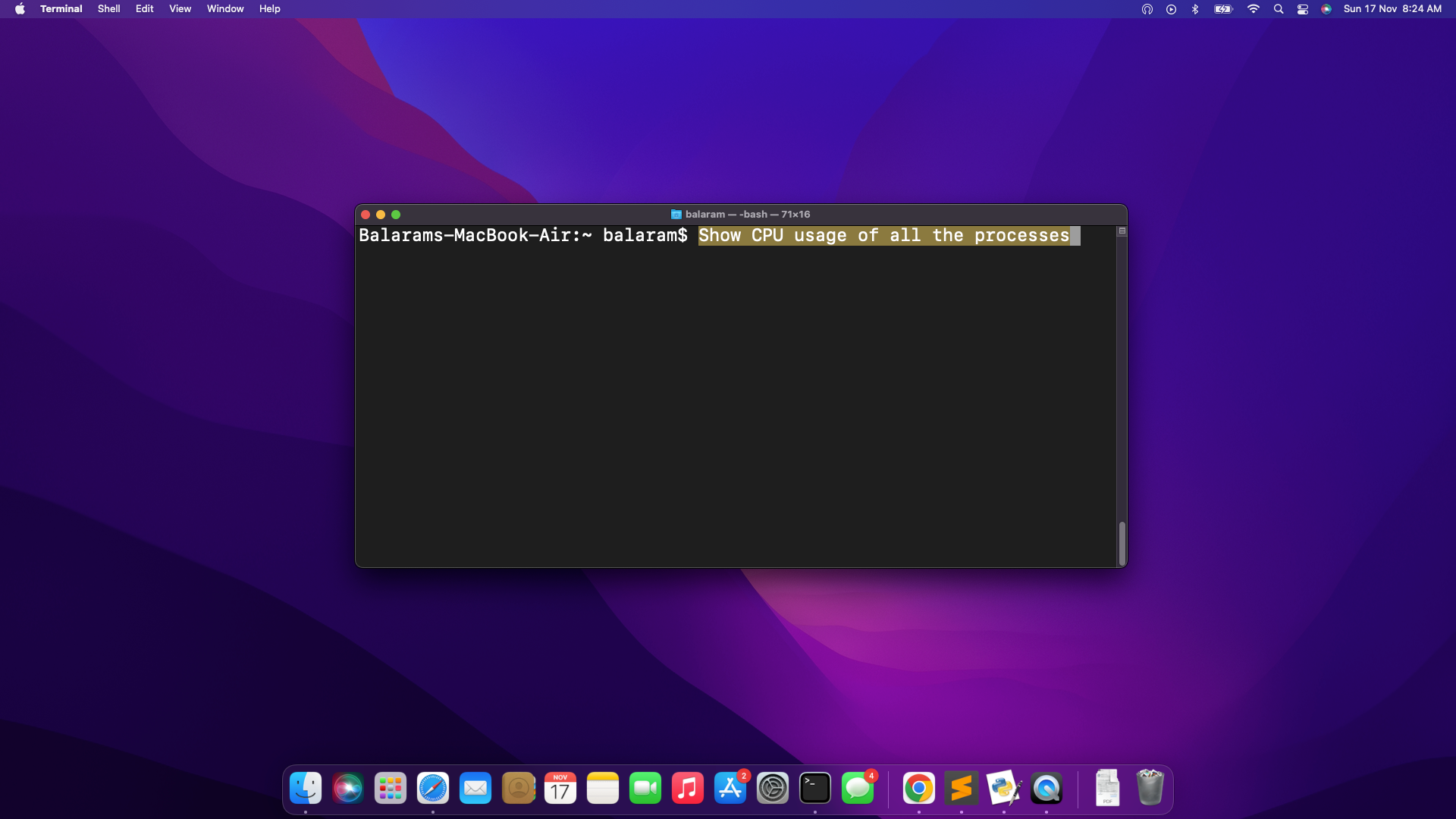 Open terminal and write the description of any command to perform. And then follow the below steps: