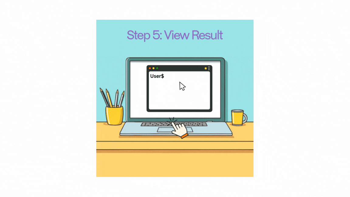 - View Result: The LLM finds the proper code to execute for the command description given by the user and replace the text in the bash terminal. Which is then automatically executed.
