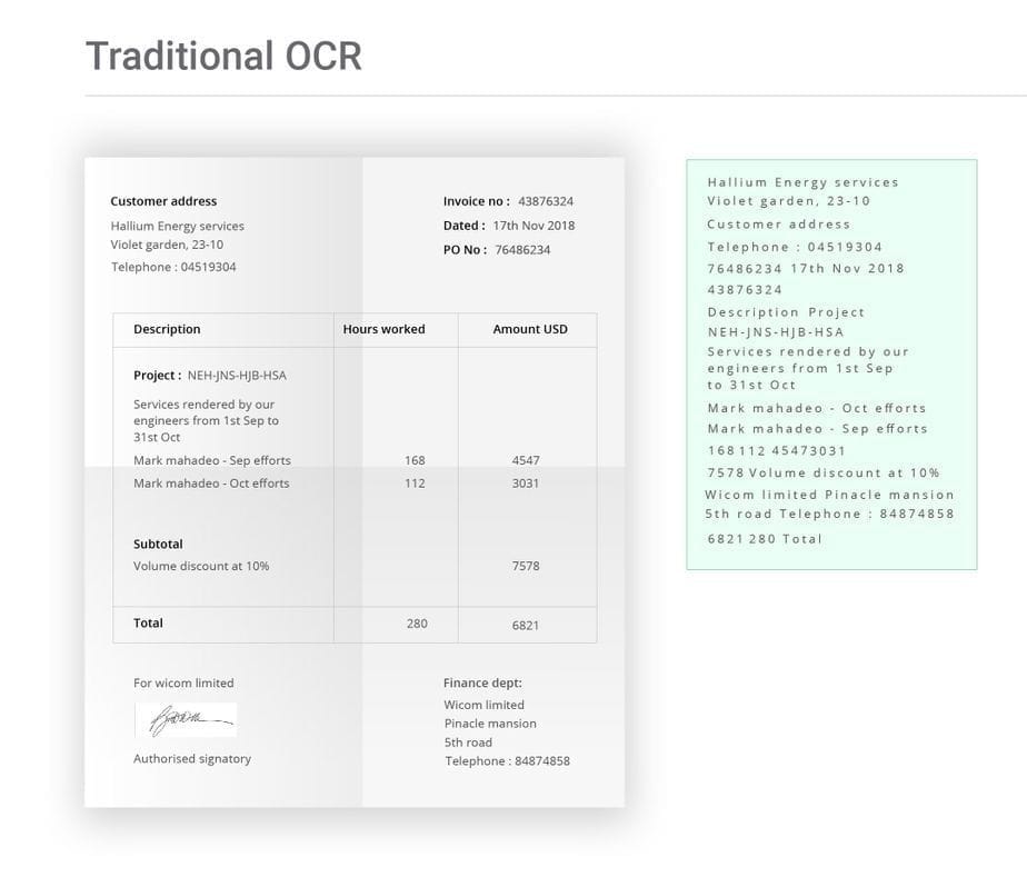 Say your team copies and pastes order details from emails into your system. But one day, you get a scanned purchase order. Your team must manually decipher the handwriting or use basic Optical Character Recognition (OCR) software to extract and input the data, potentially leading to errors and delays.