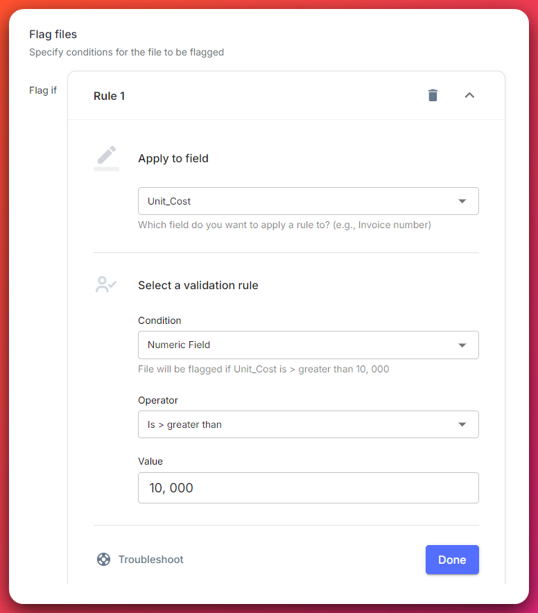 In the IDP solution, use conditional blocks to set up rules like if the unit_cost extracted on a document is higher than a certain amount, then set the priority_field to "high".