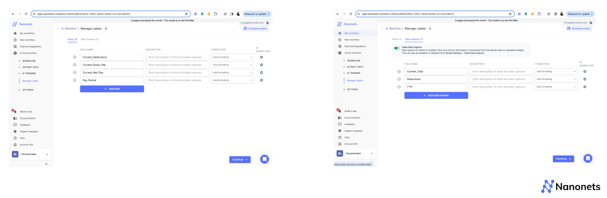 Let us look at how we can automate payslip parsing using IDPs with an example. We will be using Nanonets for this: