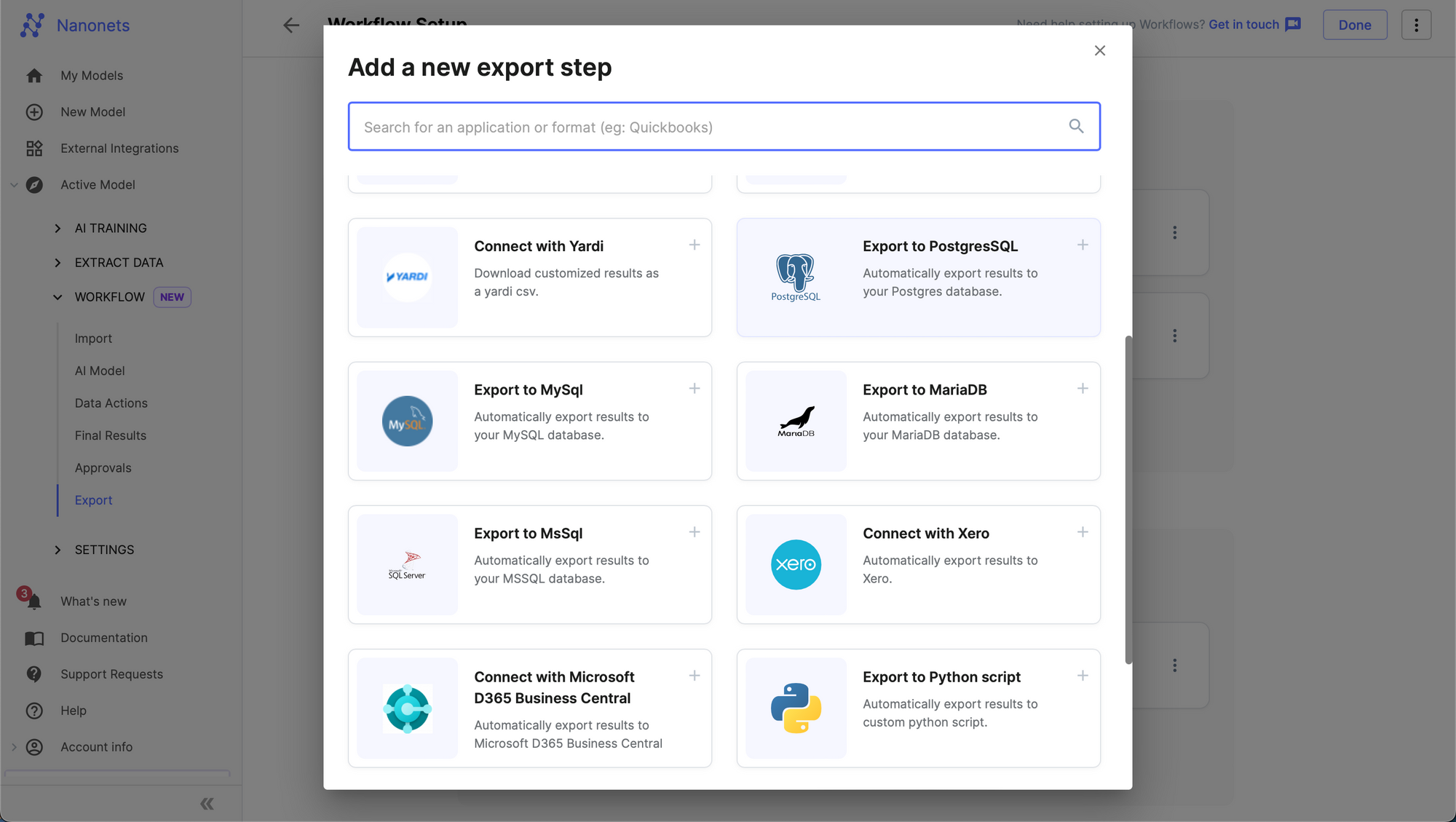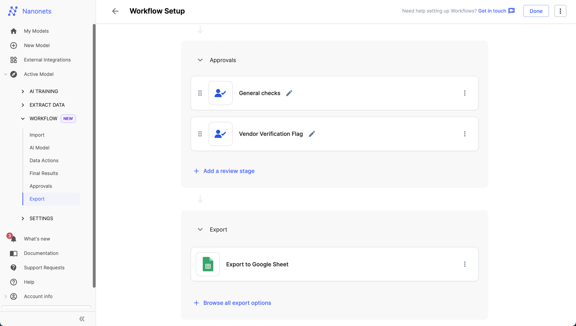 Step 3: Go to the Workflow section in the left navigation page, and navigate to the Export subsection.