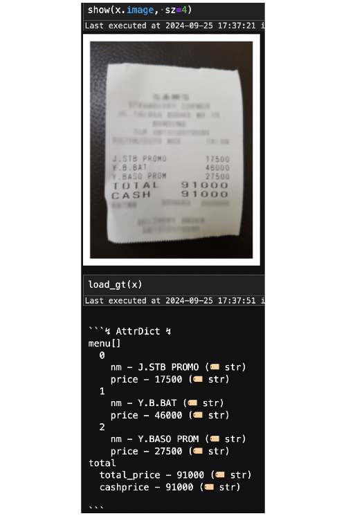 this applies to highlevel keys as well, i.e., menu, subtotal and totalPrompt to extract fields and table data from CORD dataset