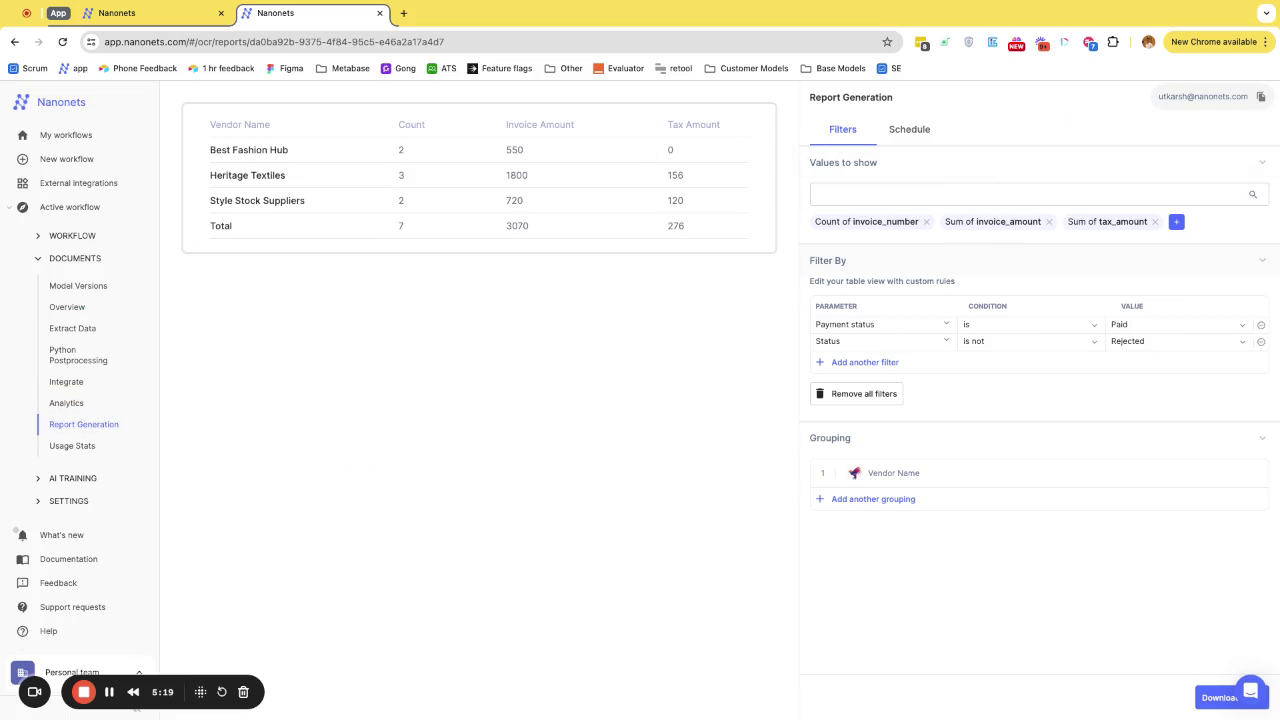 Want to know where things stand? Nanonets gives you dashboards and reports on invoice status, bottlenecks, aging, and even cash flow forecasts. Ask a question in plain English—like “show top vendors by spend”—and get an answer, not just a spreadsheet.