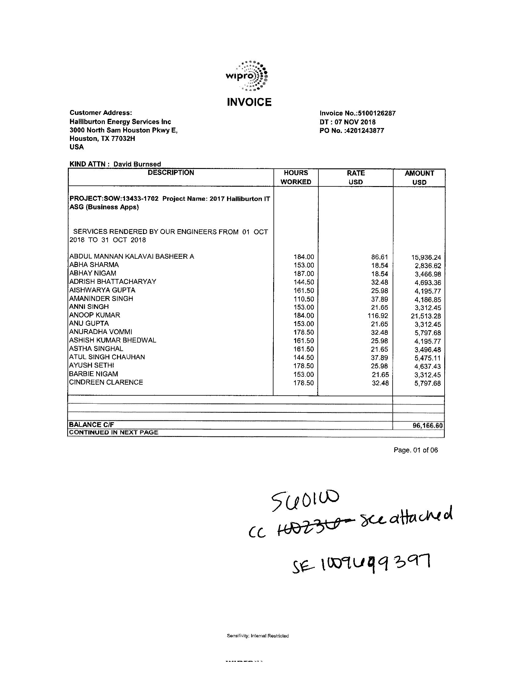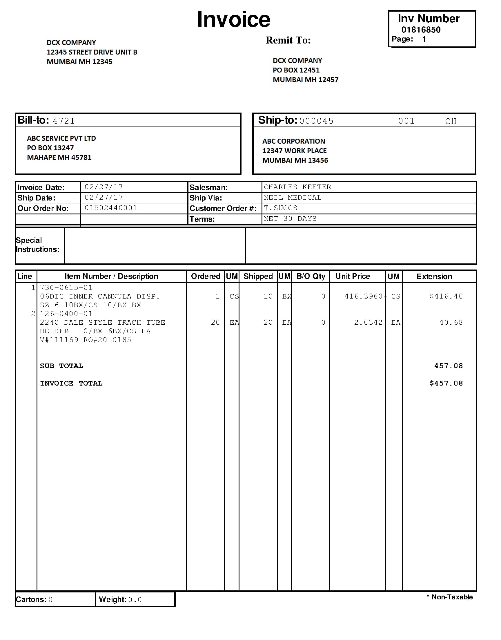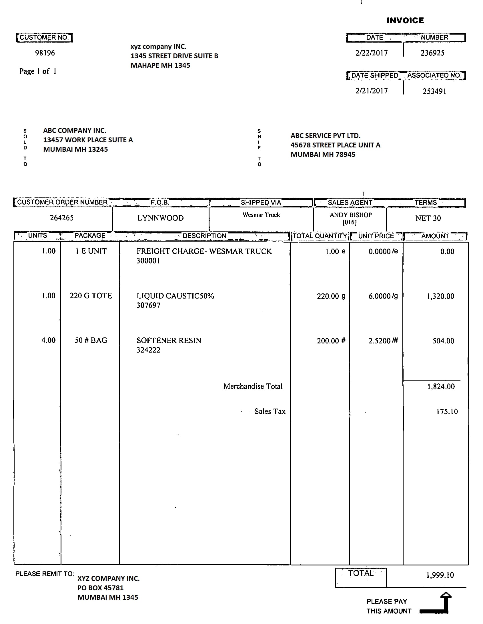 - All the entries and fields present in the invoice like name, product, price, total sum, discounts, etc.