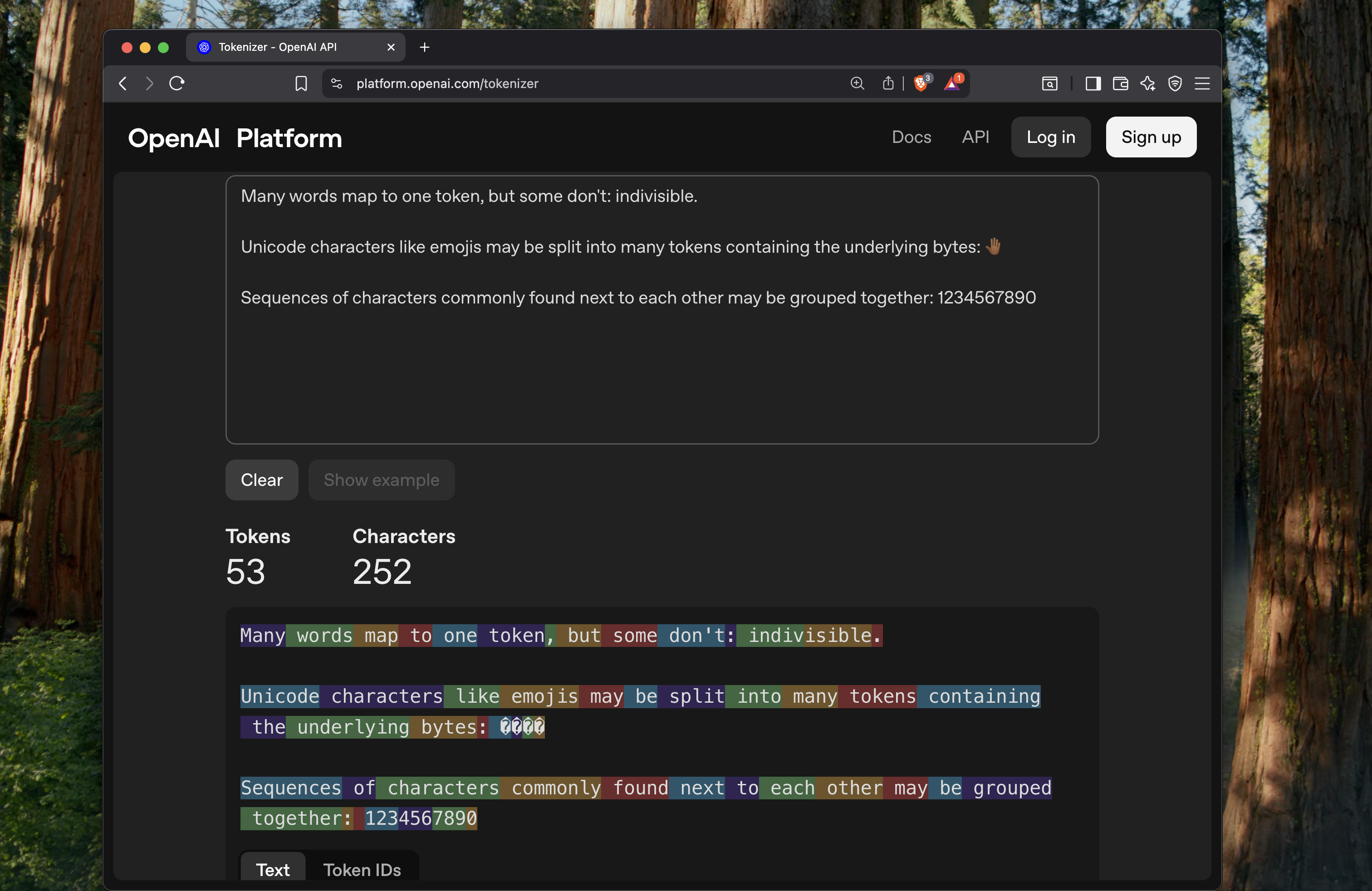 - splits the prompt into a token set.