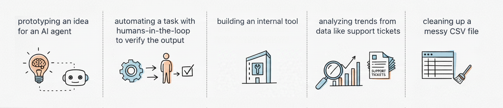 We'll think of a more suited example: Say we want an internal Slack app to submit expenses for reimbursement. Employees write a Slack message and the app records an expense in a database. This is an internal app that will probably have a human in the loop to verify outputs.