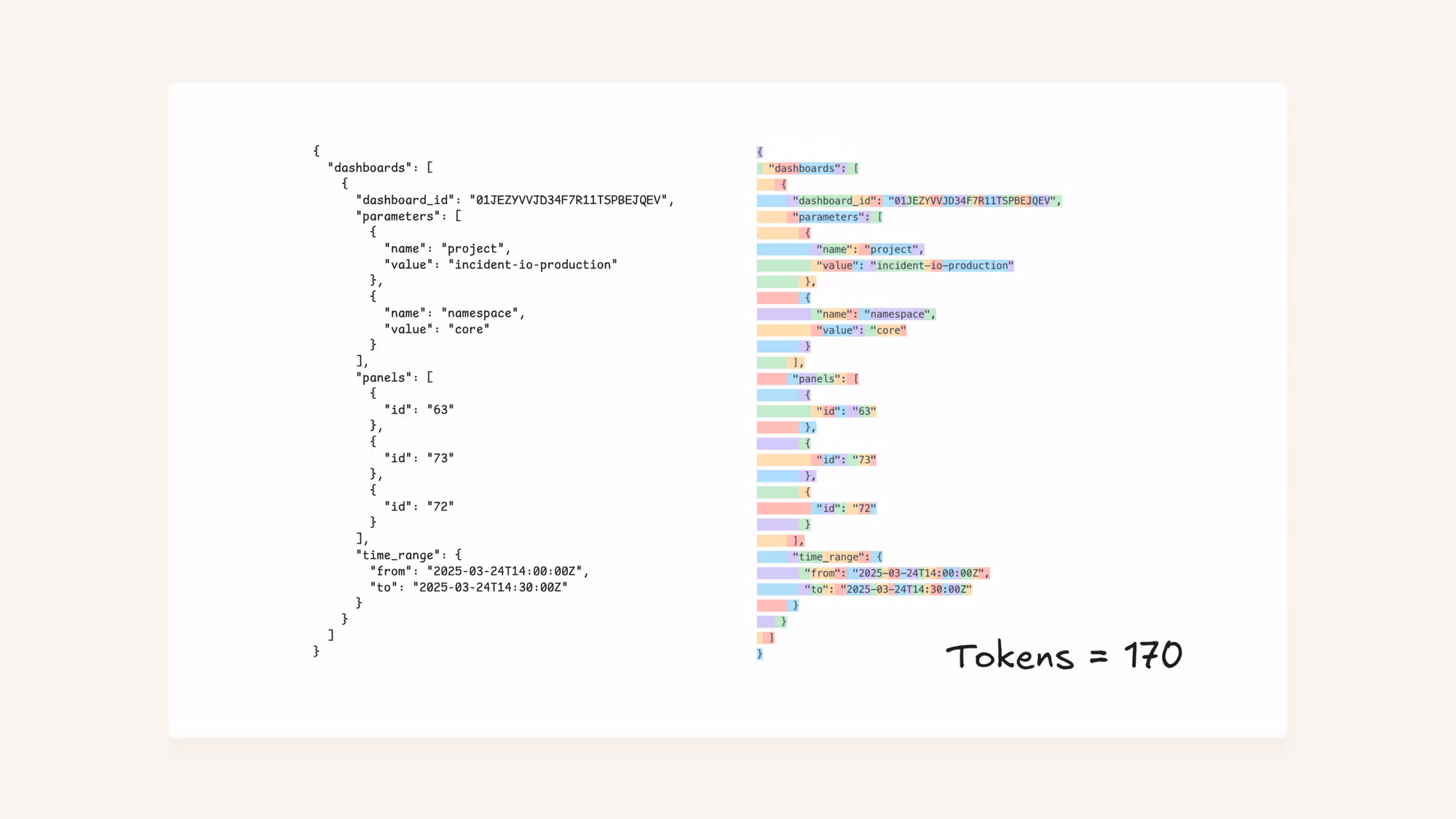 - Input: 15,000 tokens (JSON definitions of dashboards).