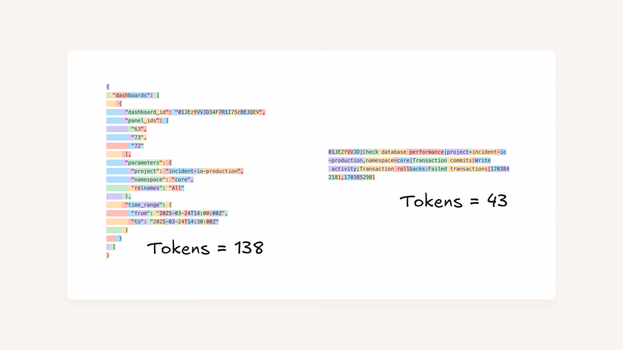 JSON is verbose. It repeats keys and uses excessive punctuation. The team replaced the JSON dashboard definitions with a custom, compact text format.