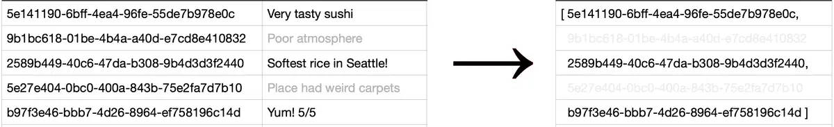 Say you have a list of messages with UUIDs, and you want to filter the list down to the UUIDs of messages that have a positive sentiment.