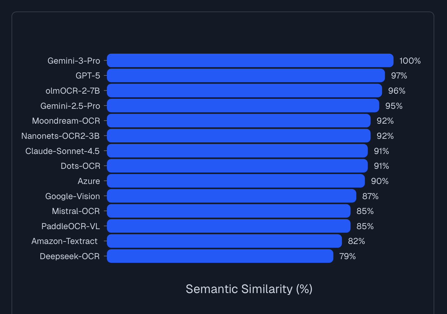 Here are results from a third-party pure OCR benchmark on handwritten and noisy text.
