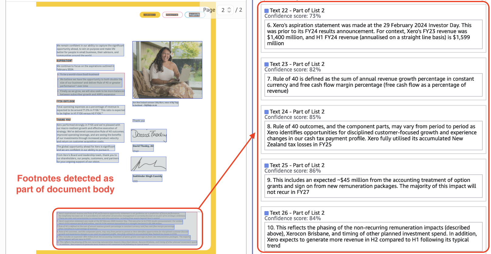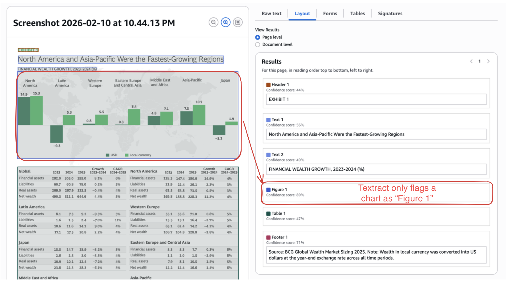 Here, Textract detects footnotes and image caption as plaintext.