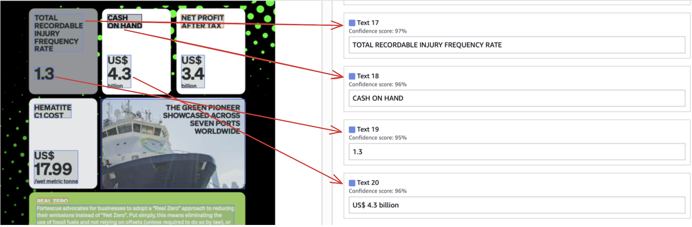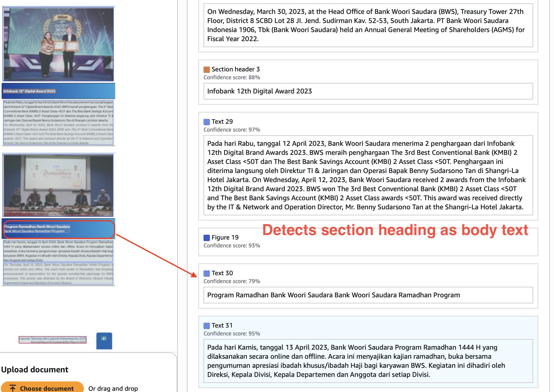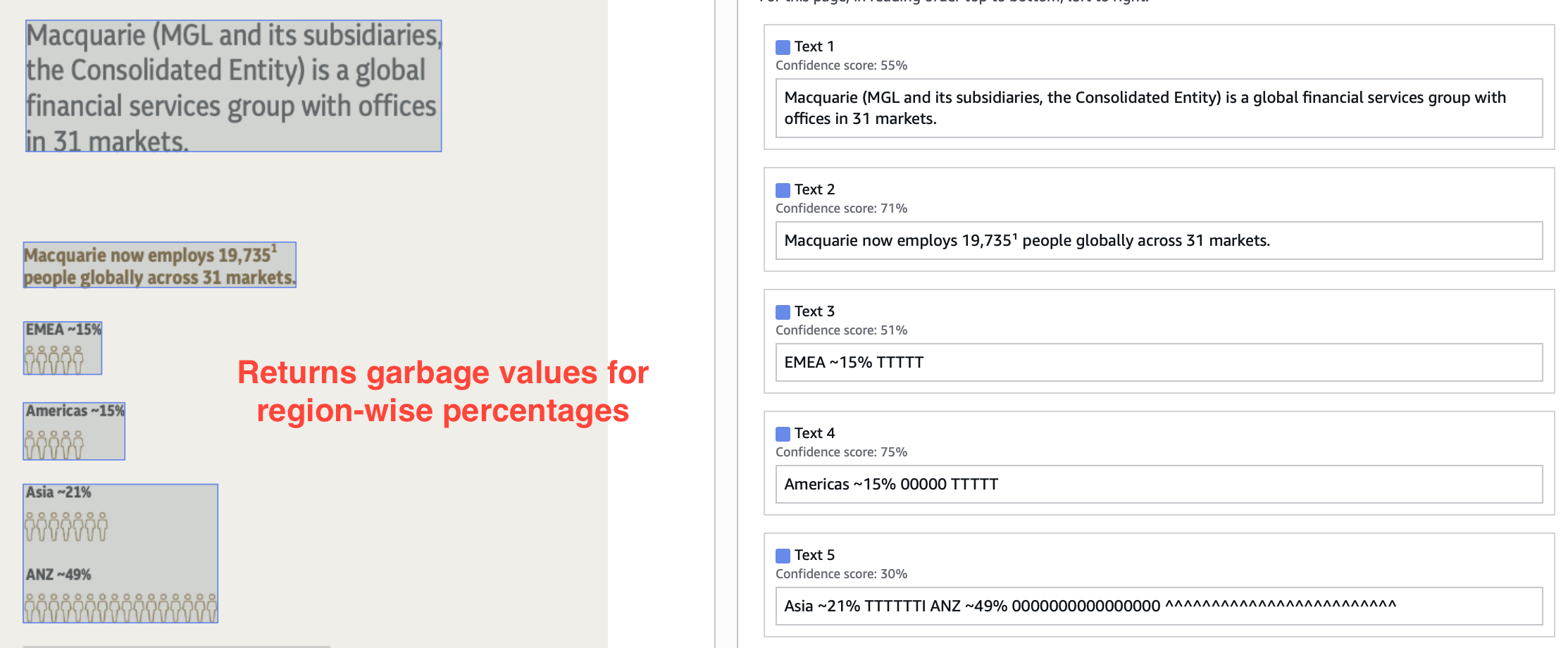 Image extraction features don’t only provide additional information but also improve the OCR accuracy. Lack of it in Textract leads to wrongly OCRed text in complex and confusing regions.