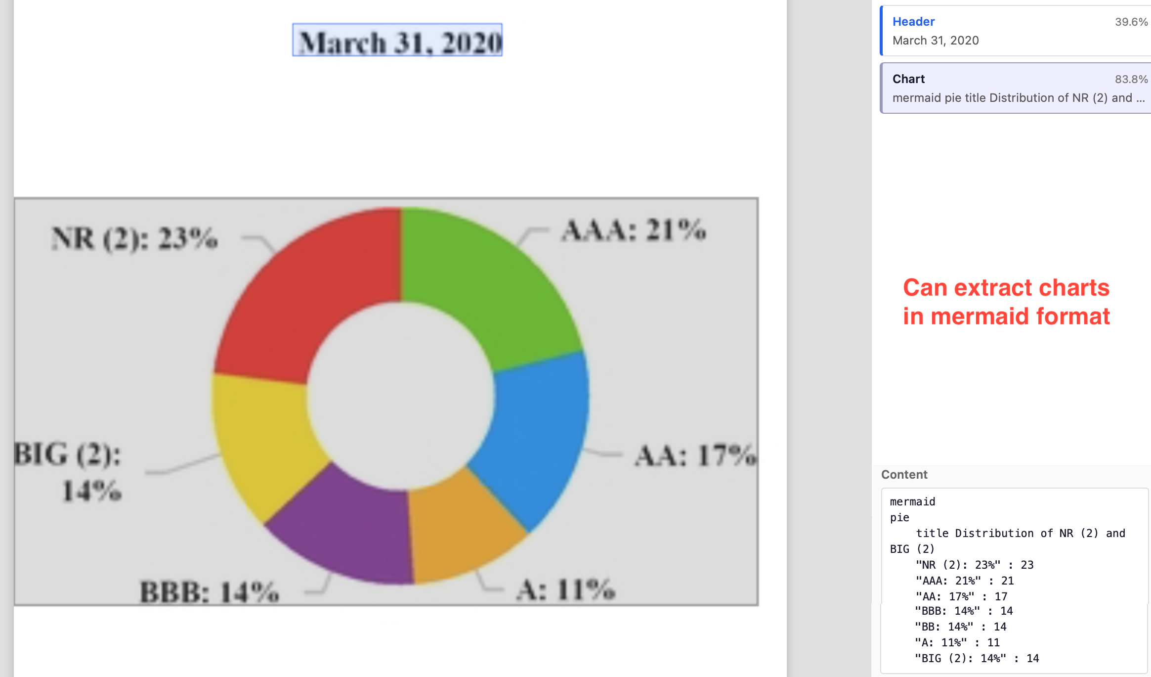 You can even specify formats, like mermaid for chart extraction, which makes it easy to use extracted info in downstream tasks.