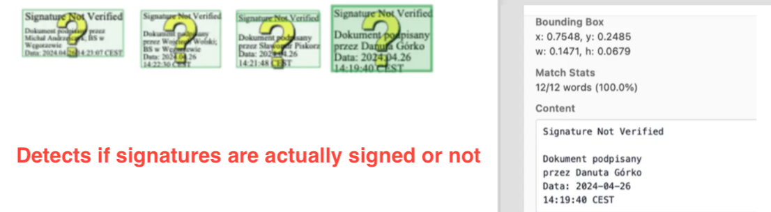 Textract signature detection seems more like a functionality added to tick off a feature list than a useful addition to its OCR outputs.