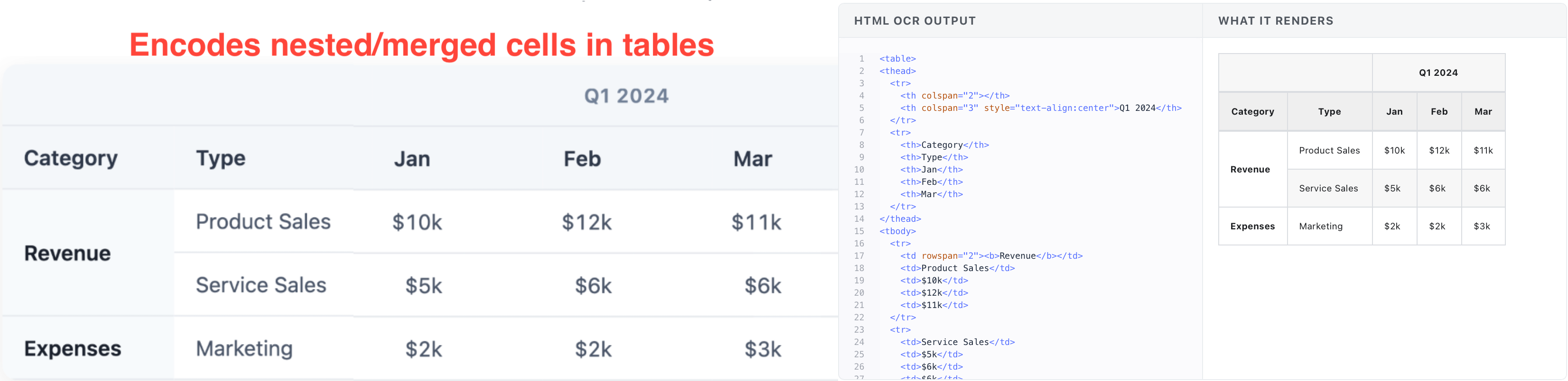 Nanonets also supports rich HTML outputs for tables with nesting or hierarchy. These outputs respect the original table’s indentation, formatting, nested rows/columns.