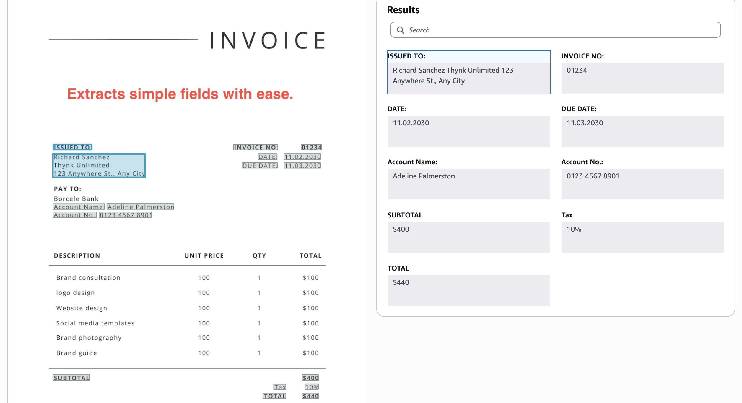 Similarly, say you want a clean ID (123456). Textract might return 123 456, 123-456, #123456 depending on the document. You must write more code to clean the text before your database accepts it.