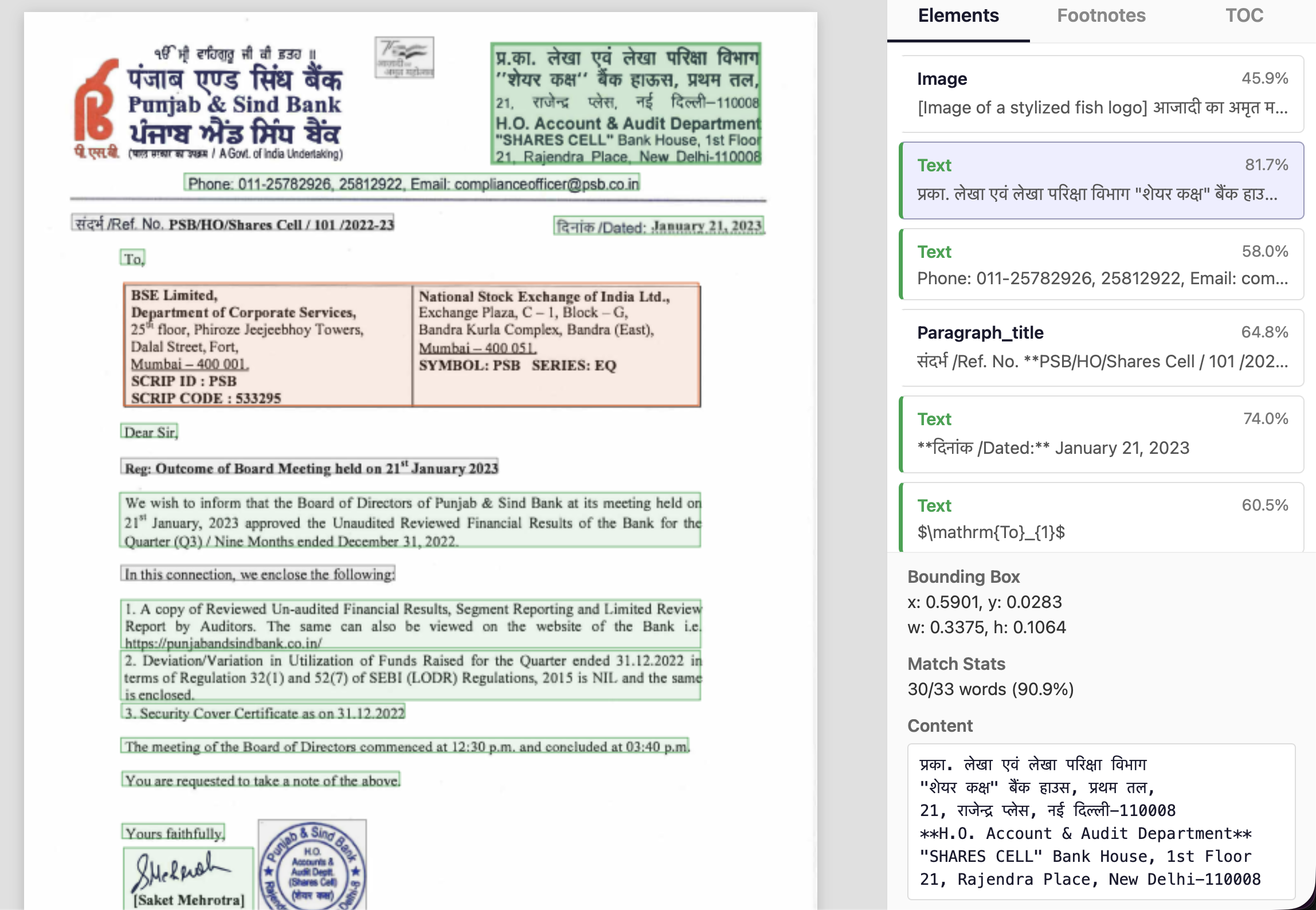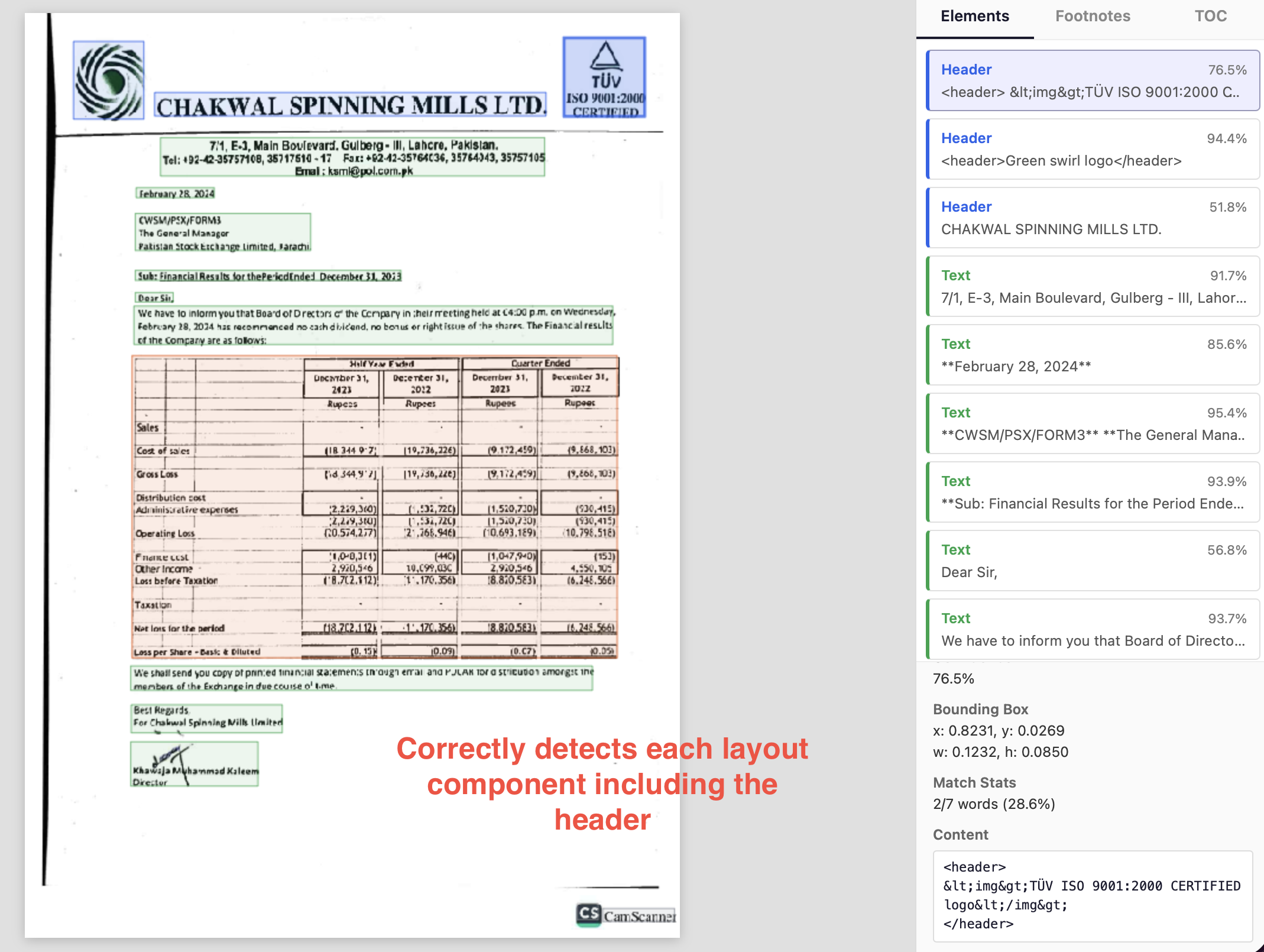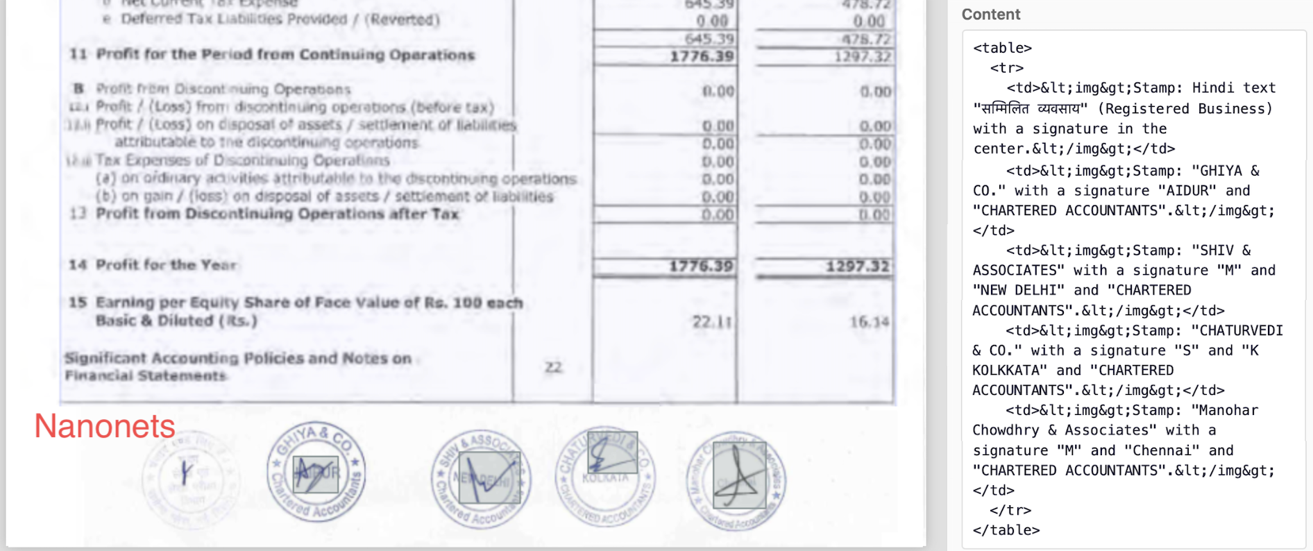 On the other hand, Nanonets detects all signatures and stamps perfectly, links them to respective signees, and includes them in the layout portion of the output.