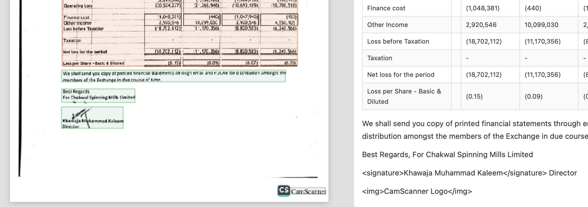 Nanonets detects the signature separately, and attaches it to the correct signee text.
