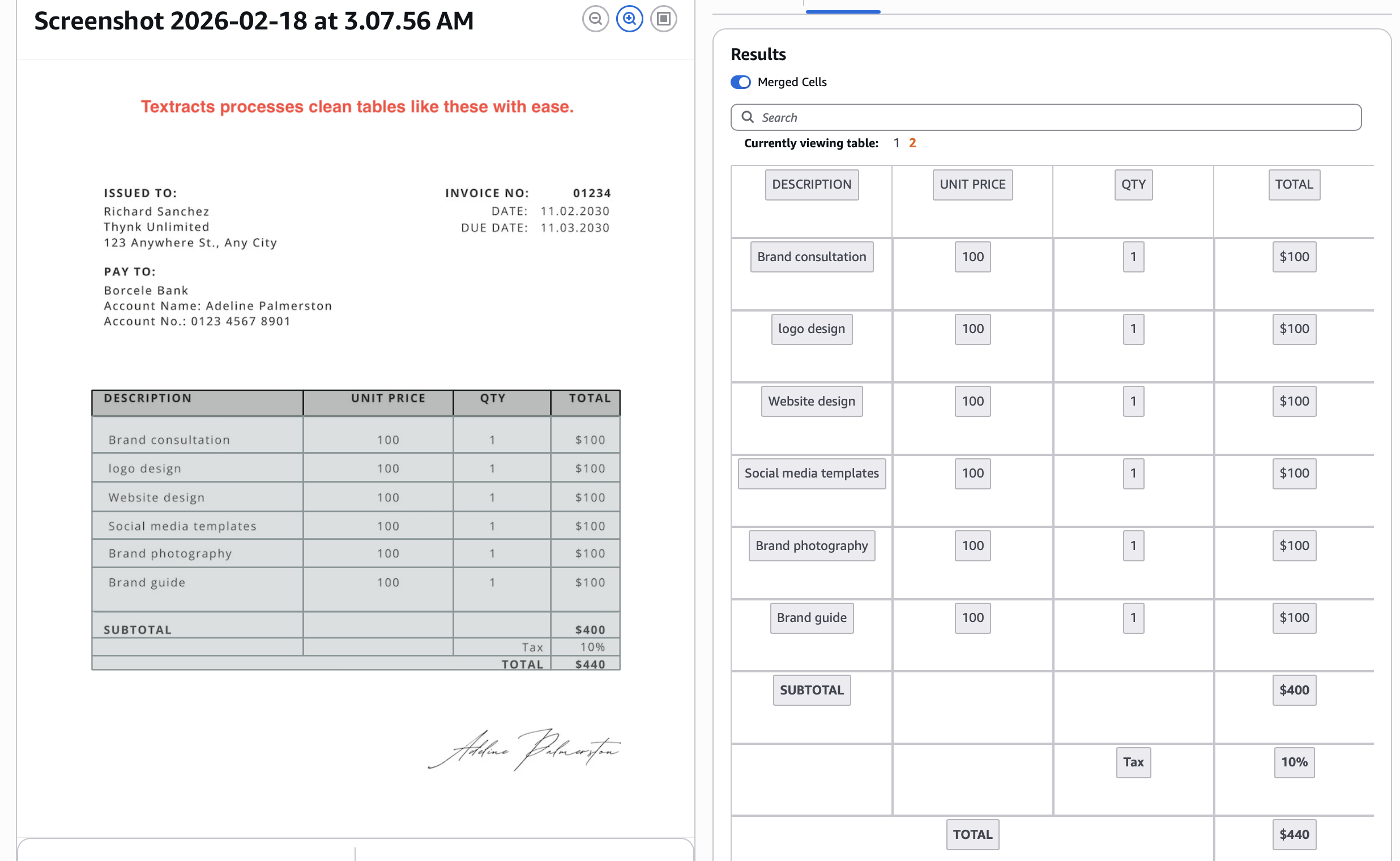 This is Textract’s bread and butter today. We’ll look at some outputs.